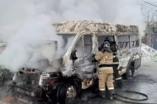 В Орске сгорел маршрутный микроавтобус