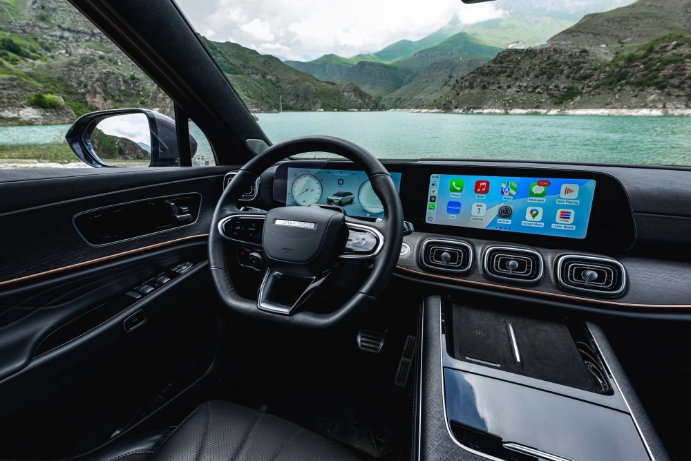 Открыв дверь, попадаешь в пространство, где понятие «китайская сборка» теряет свой привычный смысл. Здесь царят мягкий наппированный пластик, отделка из экокожи, вставки под дерево и алюминий, подогнанные с ювелирной точностью. Доминантой интерьера является изогнутый 24-дюймовый экран, объединяющий панель приборов и мультимедийную систему. Интерфейс работает на мощном чипе Snapdragon 8155, что обеспечивает мгновенный отклик и плавность анимации.