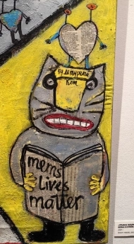 С ярких полотен на зрителя смотрят герои истории – немного странные, немного гротескные, но при этом одинаково милые и притягательные, возвращающие в детство, помнящее задорную и запоминающуюся советскую анимацию. Их сюжет всегда ироничен, но ирония эта добрая, вызывающая улыбку. Как говорит сама художница, основой любой её работы является «культурно-исторический треш, мемы, чушь и околесица».  К примеру, пушкинский кот с Лукоморья причудливо смешался с избитым канцеляризмом – так на свет появился «Культурный кот».