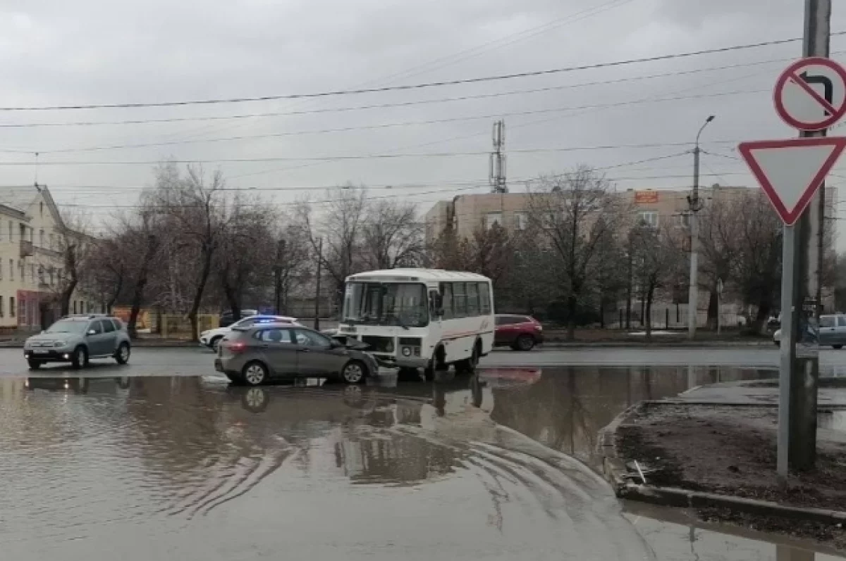 В этот момент по ней двигался автомобиль «Киа Рио». Избежать столкновения не удалось — машины столкнулись. К счастью, в происшествии никто не пострадал. Оба транспортных средства получили механические повреждения. На месте происшествия не только разметка, но и сама проезжая часть скрыта под толщей воды.