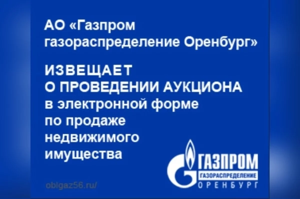 АО «Газпром газораспределение Оренбург» извещает о проведении аукциона в электронной форме по продаже недвижимого имущества.