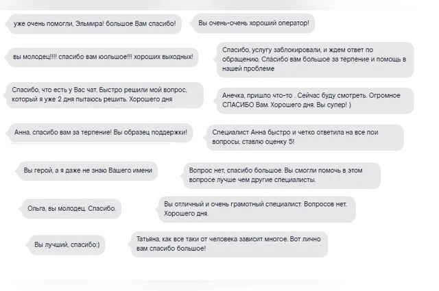 Операторы на 26 региональных площадках в 19 городах ежегодно обрабатывают свыше 100 млн обращений. Самые большие филиалы — Липецк (838 человек), Кострома (820) и Чебоксары (781). Растет один из самых важных показателей — положительная обратная связь от клиентов. В 2025 году более 2 млн раз в месяц говорят абоненты «спасибо», «благодарю» и другие слова признательности – это каждый второй клиент массового сегмента и 60% бизнес-пользователей. Среди обратившихся в контакт-центр представителей малого и среднего бизнеса удовлетворенность составляет 92% (на 7% выше средних показателей по рынку).