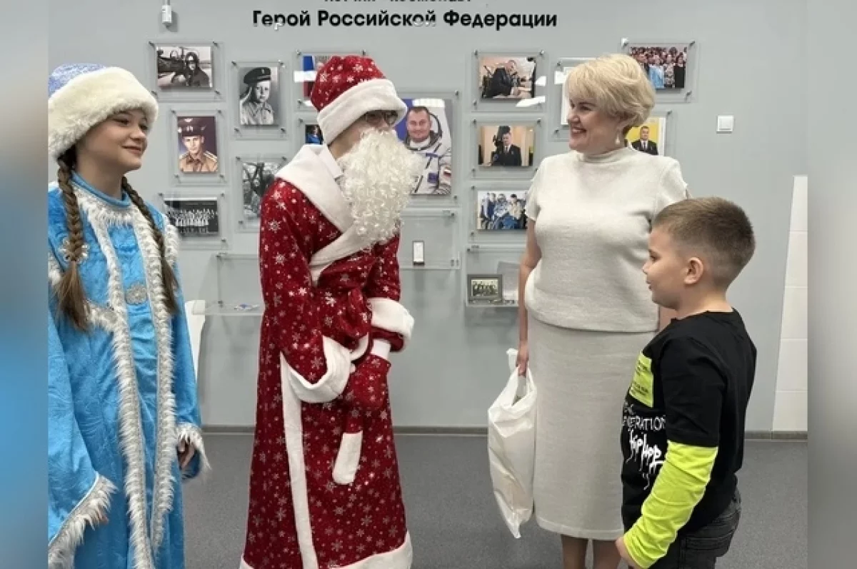 С детьми из семей участников СВО также встретилась Юлия Абдраимова. Вместе с Дедом Морозом и Снегурочкой она поздравила семьи с праздниками и передала сладкие подарки.