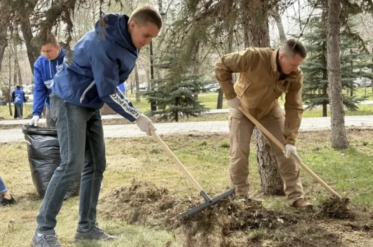 В первые теплые дни депутаты Оренбургского горсовета, члены и сторонники «Единой России», молодогвардейцы привели в порядок сквер 4 апреля.